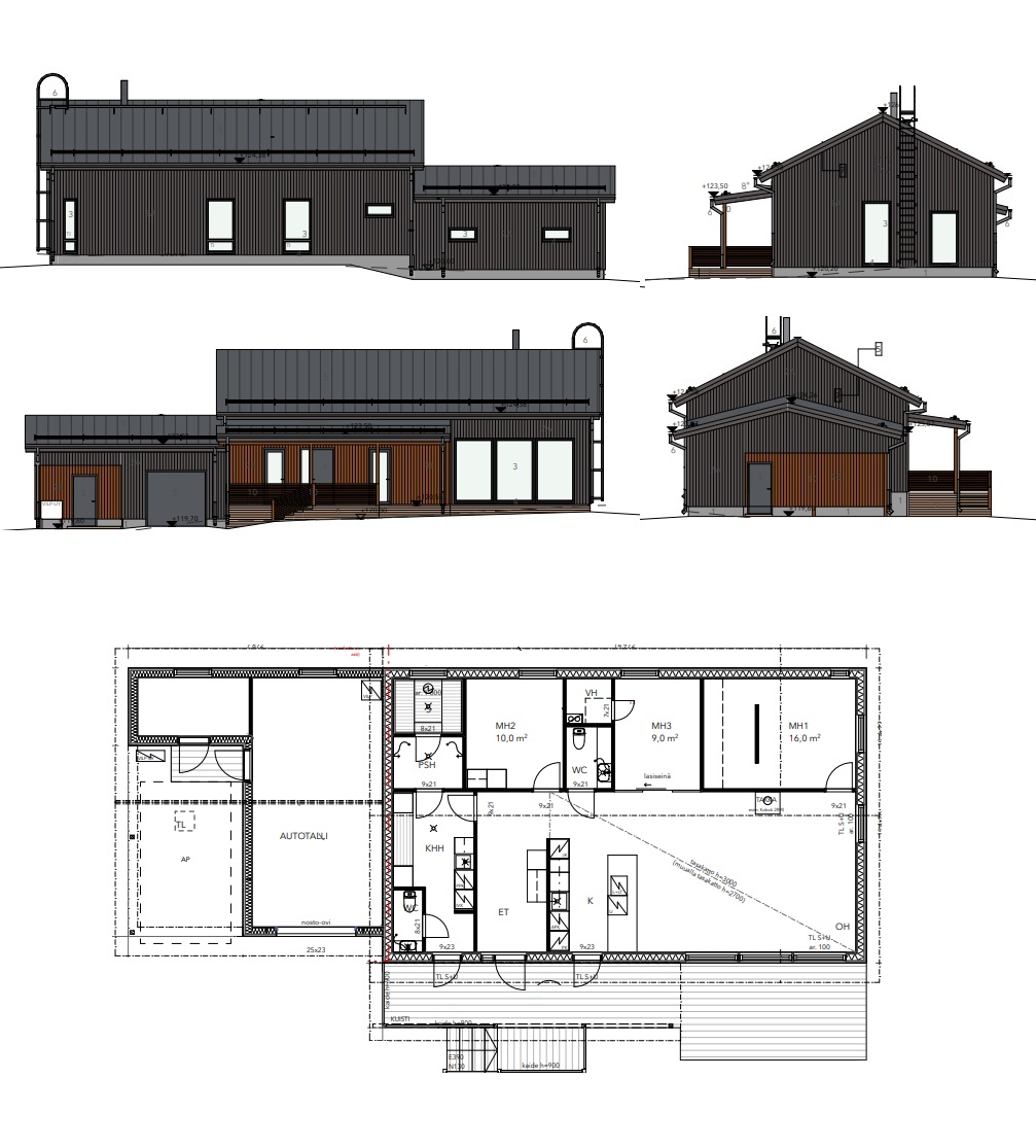1,5-kerroksinen, 143m2, autokatos ja varasto.
